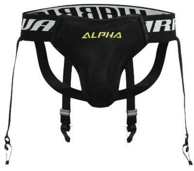 Alpha X Jock on klassisen tyylinen alasuojamalli pelaajille, vyötärö nauhassa klassiset sukka sträpit, jolla sukat pysyvät tiukasti kiinni. Kovakuorinen suojakuppi pehmeällä sisävuorauksellä. Leveä elastinen vyötärönnauha varmistaa mukava sekä paremman sktuvuuden